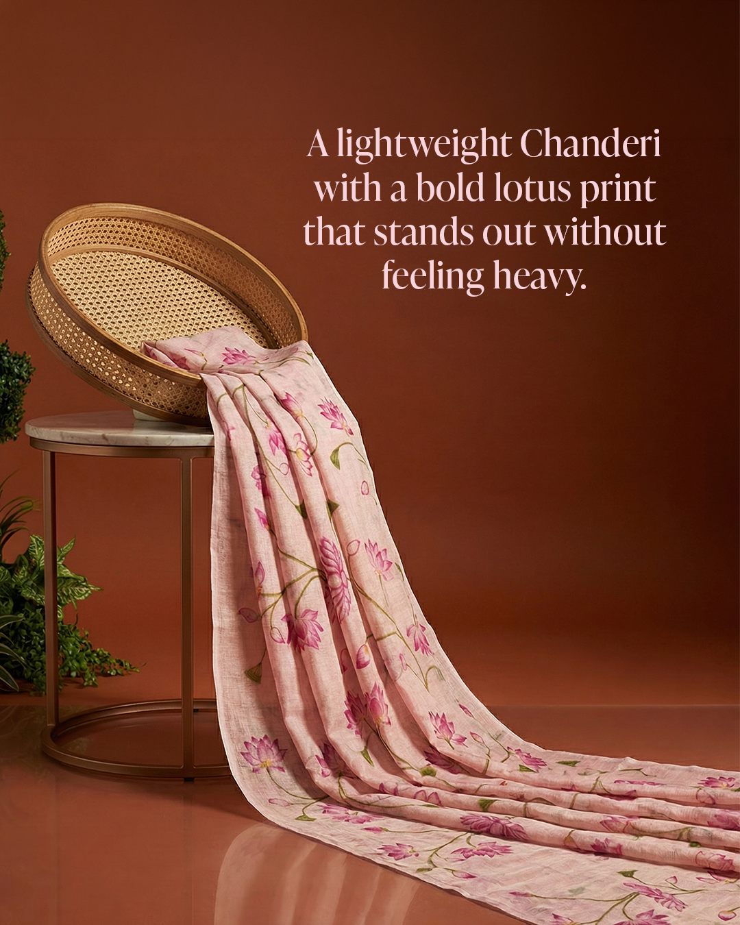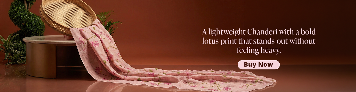 Peach Lotus Printed Chanderi