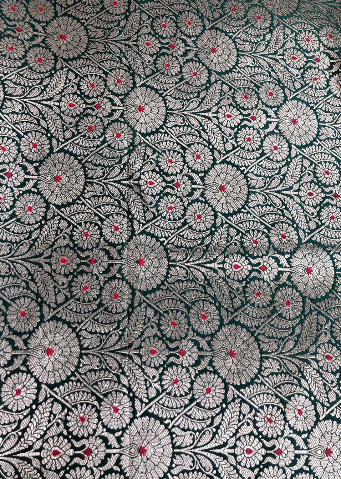 Banarasi silk fabric is a fine quality silk variant originating from Varanasi, Uttar Pradesh. Pure Banarasi sarees are made from high-quality pure silk and zari threads derived from alloys of gold and silver, that are very expensive. The weaving process is also laborious and consumes weeks or even months. It is used in saari, lahenga, suit.