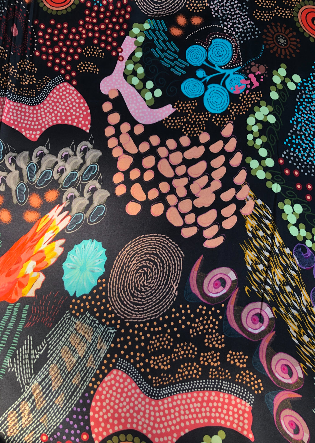 Satin is a soft & flowy fabric. It's a light fabric with a satin weave that makes the textile extremely smooth and gives it a subtle sheen. The smooth surface of this fabric makes for a great base for intricate prints, as even the smallest details turn out as sharp as can be.