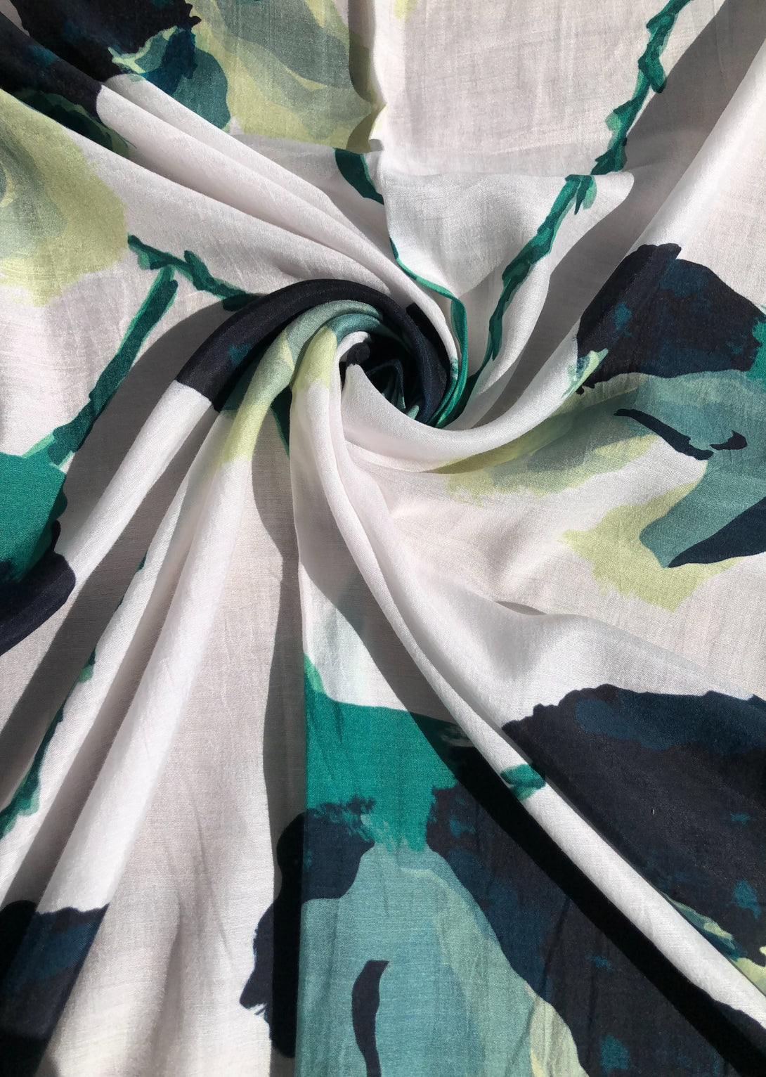 White & Green Big Floral Muslin